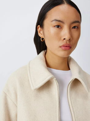Collared Wool Blend Bomber Jacket, Oatmeal