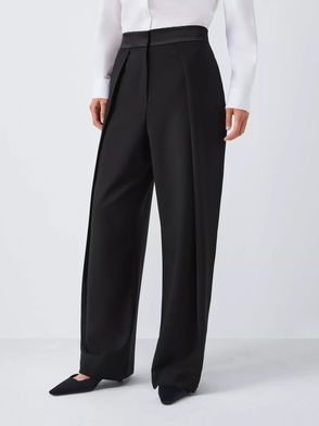 Wool Blend Wide Leg Tuxedo Trousers, Black