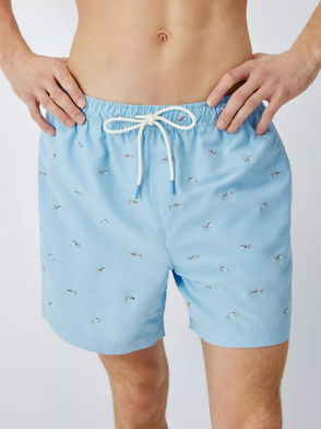 Classic Seersucker Embroidered Shark Swim Shorts, Blue