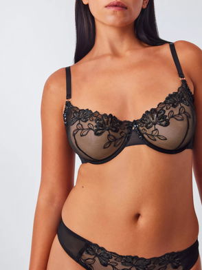 Kiki Sparkle Embroidered Non Padded Bra, Black