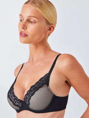 Kiki Sparkle Embroidered Non Padded Bra, Black