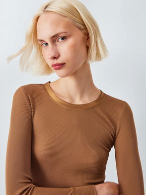 Ribbed Silk Thermal Long Sleeve Top, Biscuit
