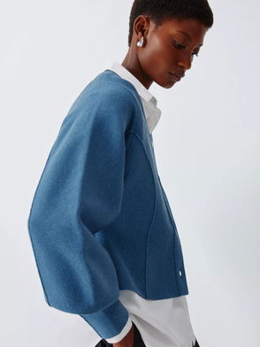V-Neck Seam Detail Cotton Blend Cardigan, Denim Blue