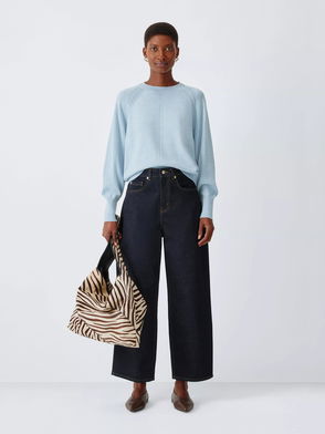 Raglan Seam Crew Neck Cotton Knit Jumper, Pale Blue