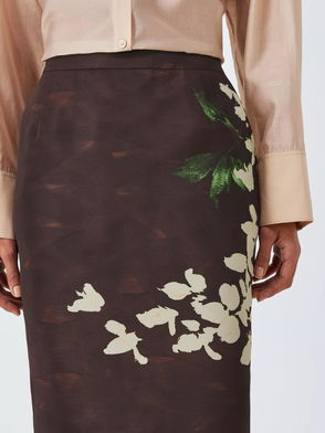 Taffeta Floral Print Midi Skirt, Multi