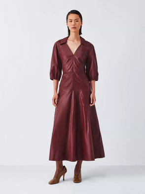 A-Line Collared Leather Midi Dress, Fired Brick