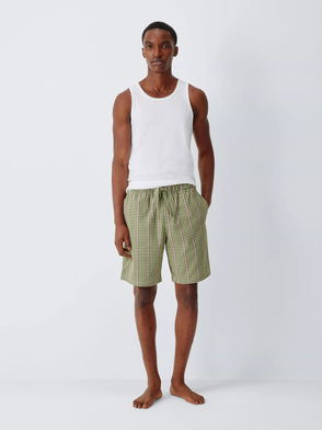 Organic Cotton Gingham Check Pyjama Shorts, Green Olive