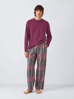 Organic Cotton Plain & Check Pyjama Set, Red Berry