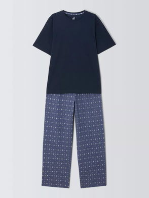 Organic Cotton Plain & Patterned Short Sleeve Pyjama Set, Blue Navy
