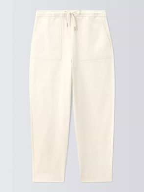 Drawstring Waist Cotton Ankle Trousers, Ecru