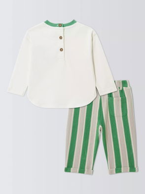 Baby Stripe Pinafore & Long Sleeve Top, Green