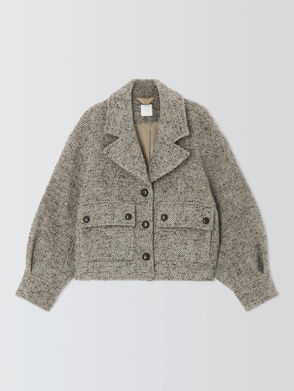 Oversized Wool Blend Herrringbone Jacket, Grey/Multi