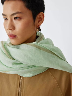 Stripe Linen Blend Scarf, Pale Blue/Green