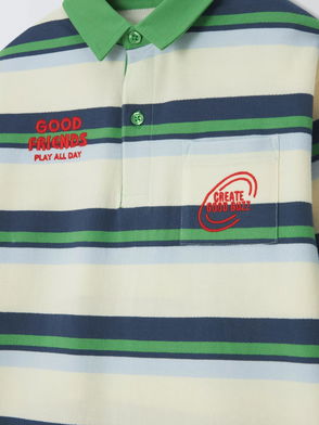 Kids' Friends Stripe Rugby Shirt, White Blue Green