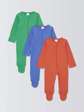 Baby Ribbed Sleepsuits, Pack Of 3, Multi