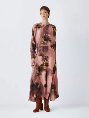 Floral Long Sleeve Round Neck Maxi Dress Containing LENZING™ ECOVERO™ Viscose