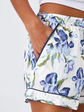 Iris Floral Pyjama Shorts, Ivory/Blue