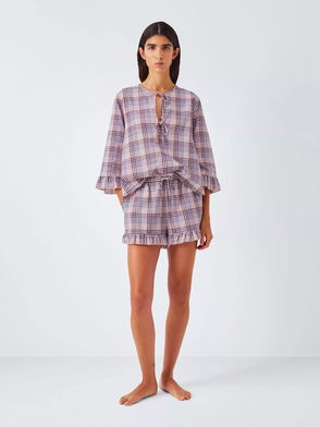 Gingham Frill Pyjama Shorts, Pink/Lilac