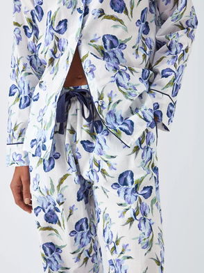 Iris Floral Long Sleeve Pyjama Shirt, Ivory/Blue