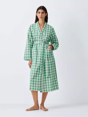 Ric Rac Gingham Pure Cotton Dressing Gown, Pink/Green