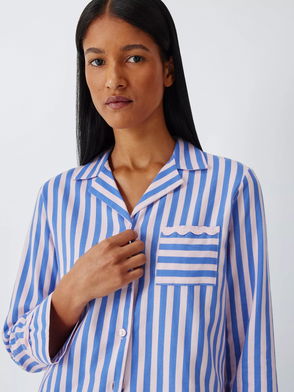 Stripe Pure Cotton Wide Leg Long Pyjama Set, Blue/Ivory