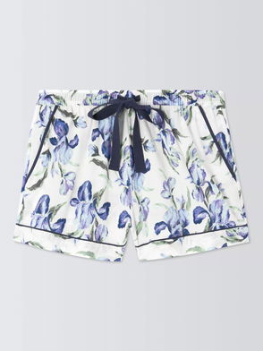 Iris Floral Pyjama Shorts, Ivory/Blue