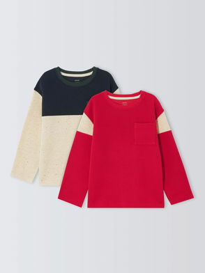 Kids' Colour Block Textured Tops, Pack Of 2, Navy / Red