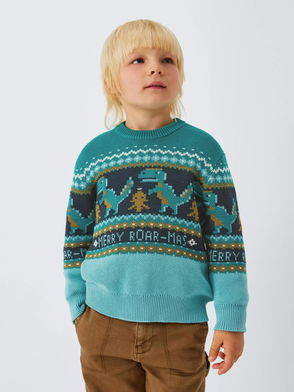 Kids' Christmas Dinosaur Fair Isle Jumper, Navy / Multi