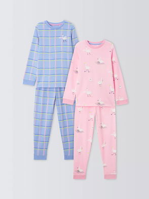 Kids' Swan Picnic Pyjamas, Pack Of 2, Pink Multi