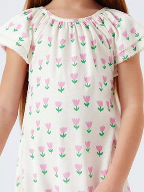 Kids' Scatter Floral Double Flutter Sleeve Nightdress, White Multi