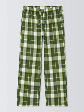 Organic Cotton Check Pyjama Trousers, Green Olive