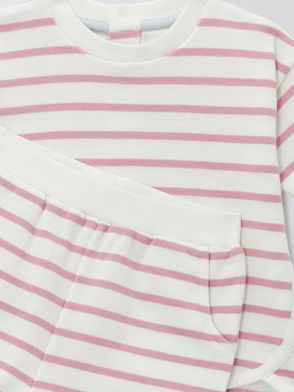 Baby Stripe Loopback Cotton T-Shirt & Shorts Set, Pink