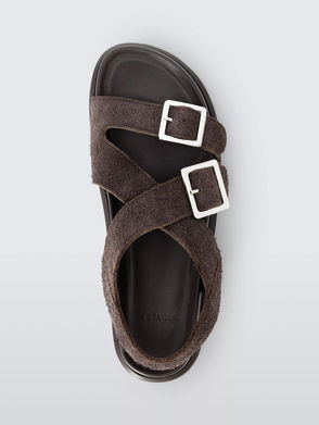 Lavender Suede Cross Strap Buckle Footbed Sandals, Chocolate
