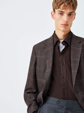 Cotton Check Long Sleeve Zip Neck Boucle Shirt