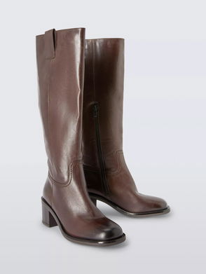 Toddy Leather Block Heel Pull On Knee High Boots, Ebony
