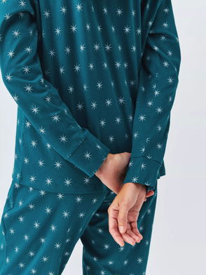 Snowflake Bottom Jersey Long Pyjama Set, Navy