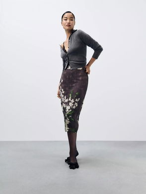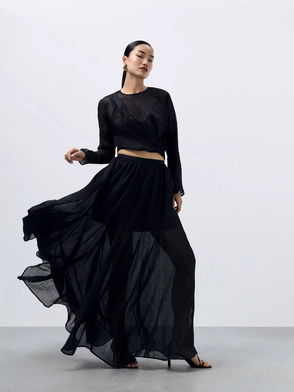 Linen Tencel Blend Sheer Panel Maxi Skirt