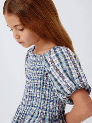 Kids' Gingham Puff Sleeve Top, Multi