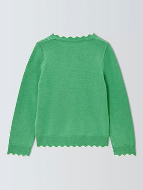 Kids' Crew Neck Scallop Trim Cardigan, Green