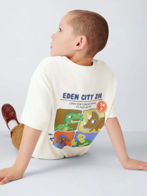 Kids' Dinosaur Short Sleeve Shirt, White Based Print