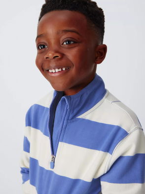 Kids' Zip Neck Stripe Sweatshirt, White Blue Stripe