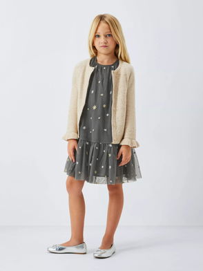 Kids' Embellished Stars Tulle Party Dress, Cream