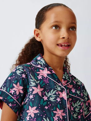 Kids' Poinsetia Print Shortie Pyjama Set, Multi