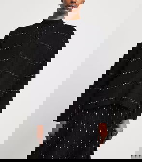 Fragmented Stripe V-Neck Stretch-Knit Cardigan