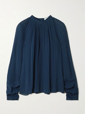 Ferrus Contrasting-Neck Pintuck Cotton Blouse