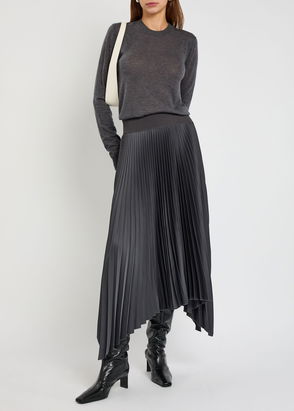 Ade Asymmetric Pleated Satin Midi Skirt