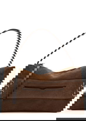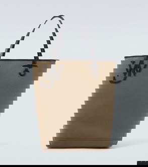 Cable-knit Leather-trimmed Raffia Tote Bag