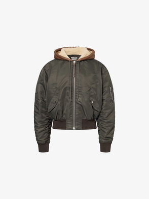 Leather-Hood Regular-Fit Shell Jacket