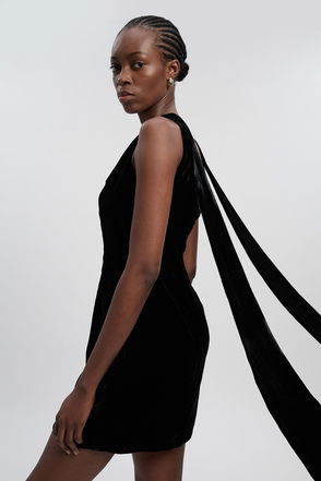 Velvet Woven Mini Dress With Back Ties