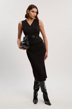Compact Essential Belted Tailored Midi Pencil Dress